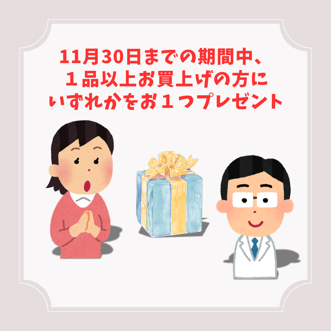 11月30日までの期間中、1品以上お買上げの方に差し上げてます