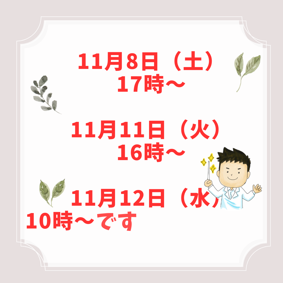 11月12日(水)10時〜となります