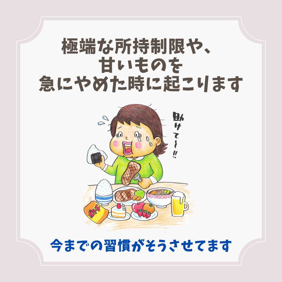 極端な所持制限や、甘いものを急にやめた時に起こります
