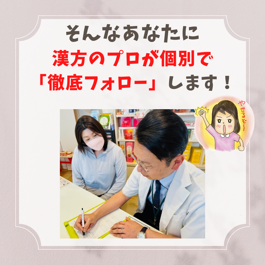 そんな方には漢方のプロが個別で「徹底フォロー」のダイエットをおススメします!