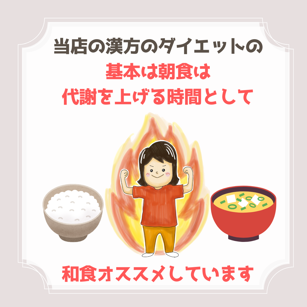 当店での漢方ダイエットの基本は朝食は代謝を上げる時間として、和食をおススメしています
