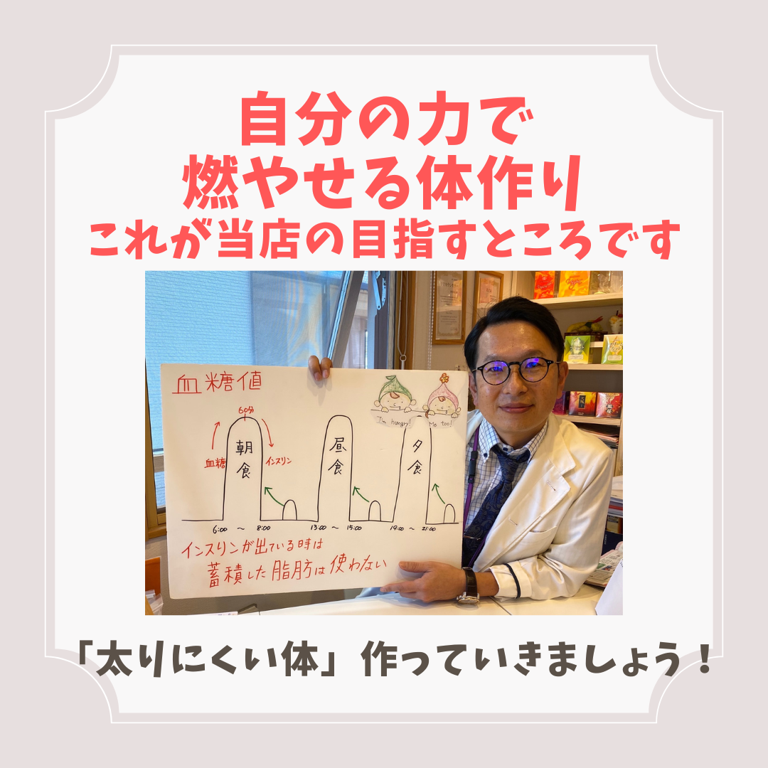 自分の力で燃やせる体作りを作るのが、当店が目指すところです。