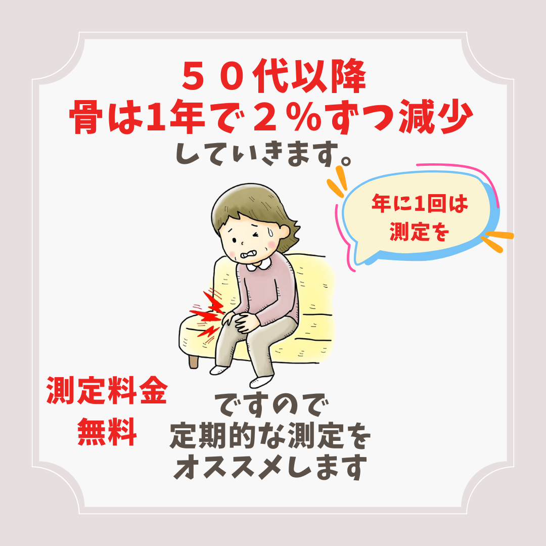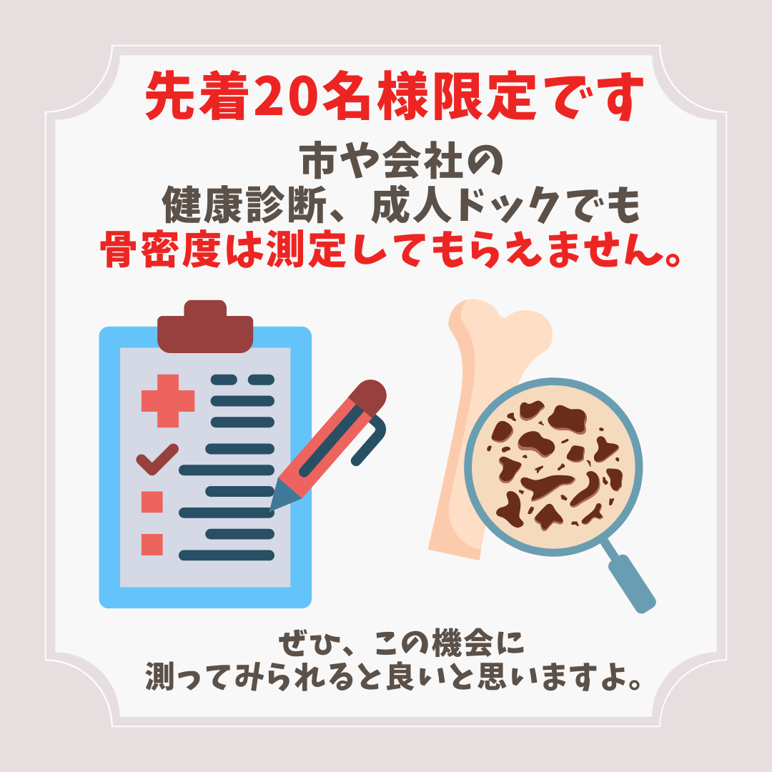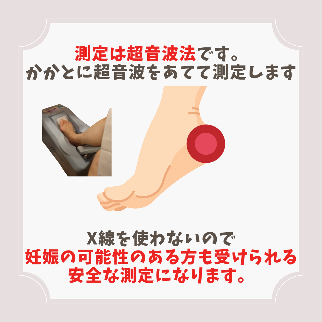 市や会社の健康診断、成人ドックでもなかなか骨密度は測定しません。