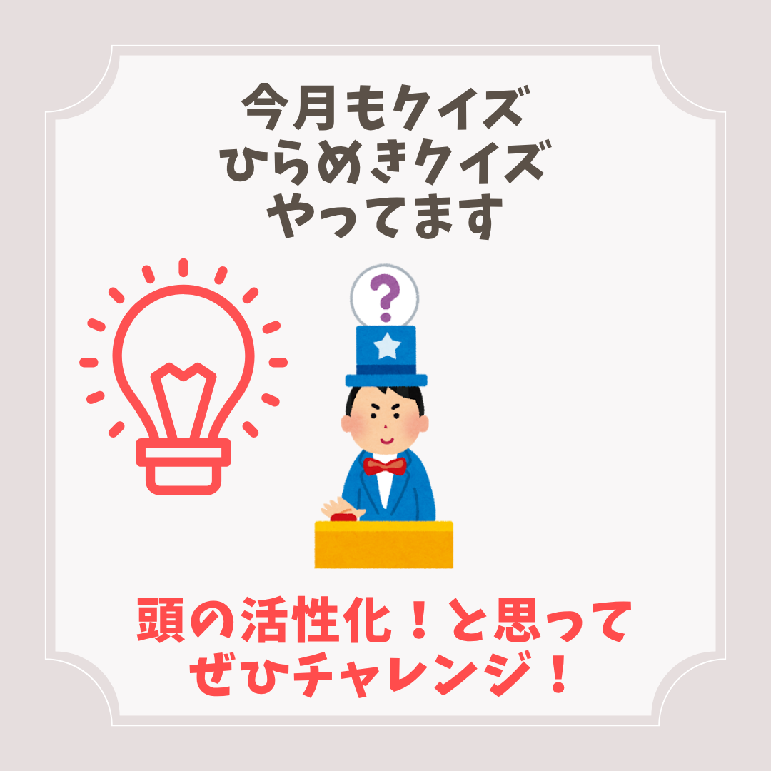 当店では毎月こうしたクイズをお出しして頭の体操をして頂いてます