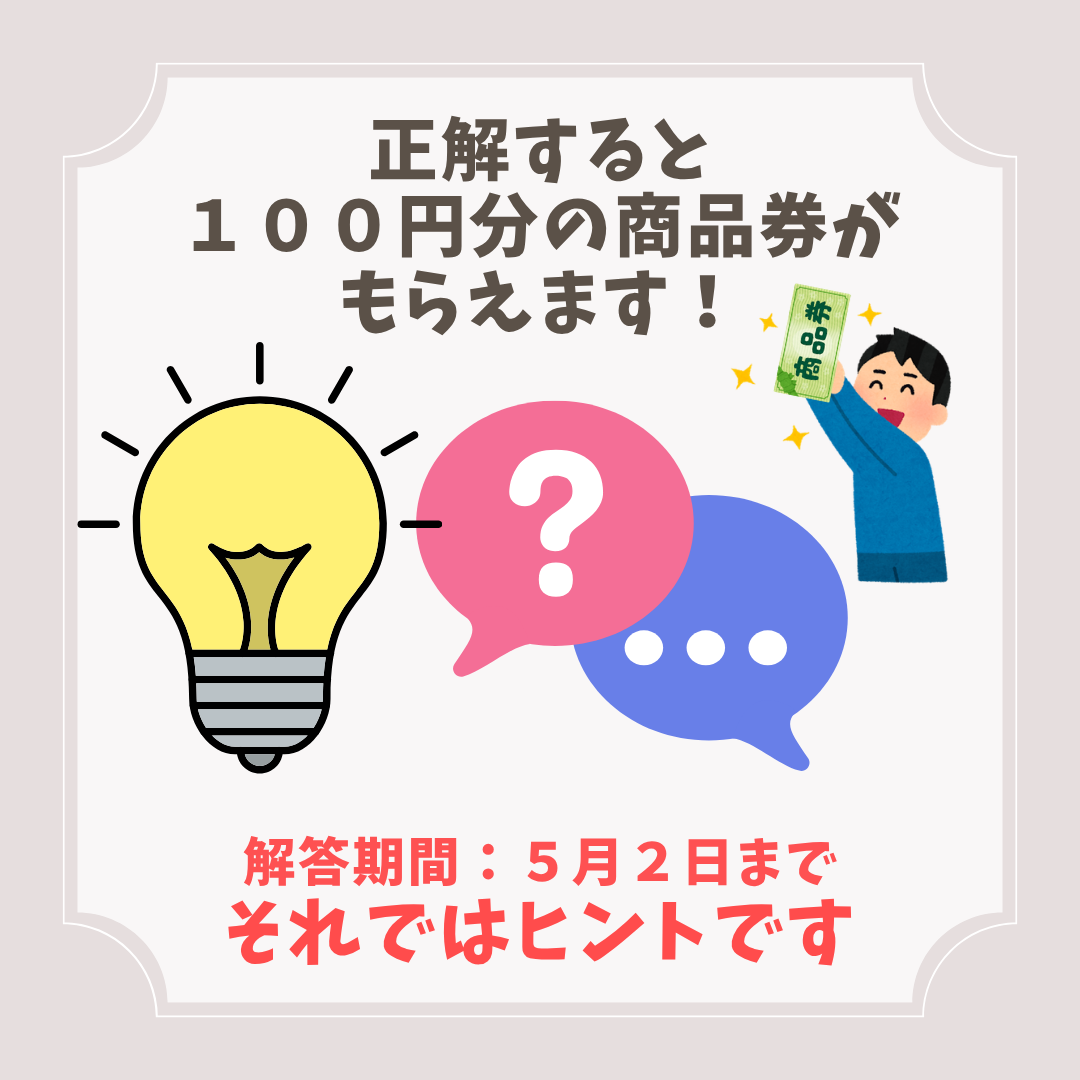 正解すると100円分の商品券をプレゼントさせて頂きます🎁